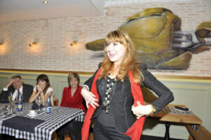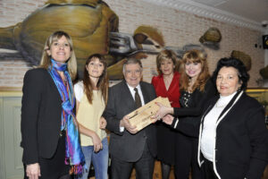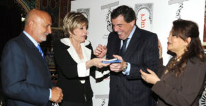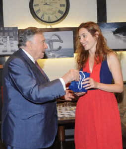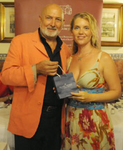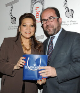 La gran actriz Licia Calderon y el destacado periodista Javier de Montini, Consejeros que han cumplido años recibieron la felicitación de los asistentes, así como unos presentes en nombre de todos los compañeros del Club y por la gentileza de OLIVER WEBER, destacado diseñador y fabricante austriaco de joyas.