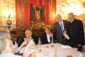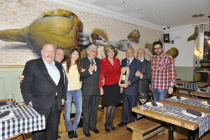 El CLUB DE MEDIOS celebró el cumpleaños de su presidente, Luis María Anson, de la visepresidenta Laura Valenzuela y de la Consejera Pilar Jurado, con un almuerzo en el legendario restaurante de Madrid “Sobrino de Botín” en Cuchilleros, “el más antiguo del mundo con el mismo nombre y en el mismo sitio”.