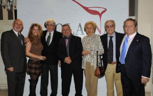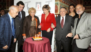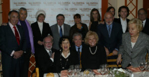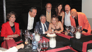 Y claro es, un placer la compañía: El académico Luis María Anson, maestro de periodistas, Laura Valenzuela, Pilar Jurado, Beatriz de Orleáns, Julio César Fernández, Alejandra Navas, Carlos Peñaloza, Pepe Ruiz, Amelia Muñoz, Enrique Suero, Salvador Santos Campano, y Francisco Cózar, director del Club y organizador del acto, que hizo entrega de presentes a los cumpleañeros por gentileza de la firma de joyas, OLIVER WEBER y de las Bodegas YLLERA.