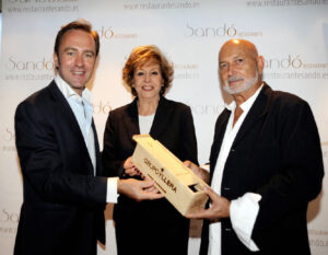 En el moderno Restaurante Sandó, ubicado en el centro de la capital madrileña, que ofrece una visión renovada de la auténtica cocina española, basada en la calidad de las materias primas y cuidadas presentaciones, el CLUB DE MEDIOS celebró el pasado 6 de abril el cumpleaños de sus Consejeros en el transcurso de una divertida cena, organizada por Paco Cózar, director del Club, y con la destacada colaboración de D. Antonio Núñez, director y propietario del Restaurante Sandó , Hotel Santo Domingo, y el Restaurante La Casuca, todos ellos en Madrid.
