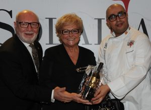 Antes de la suculenta cena ofrecida con toda clase de mimos por parte del profesional equipo que atienden a los clientes en el Restaurante Botín, capitaneados por D. Javier Sánchez, adjunto a dirección, se hizo entrega de unos presentes a los homenajeados por parte de Bodegas Yllera de Rueda en la persona de D. Marcos Yllera, que compartió el acto con todos los componentes del Club. También se entregaron presentes de la firma de joyas Austriaca Oliver Weber, gentilmente ofrecidas para la ocasión.